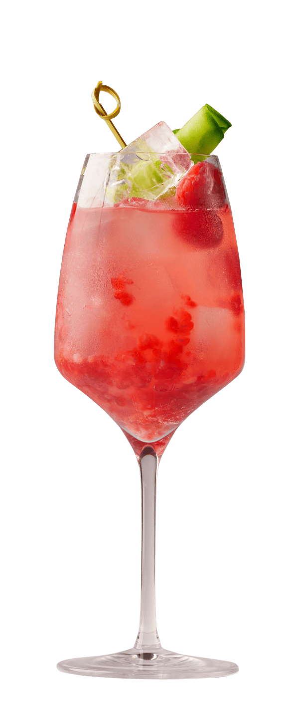 Garnished with cucumber & raspberries.