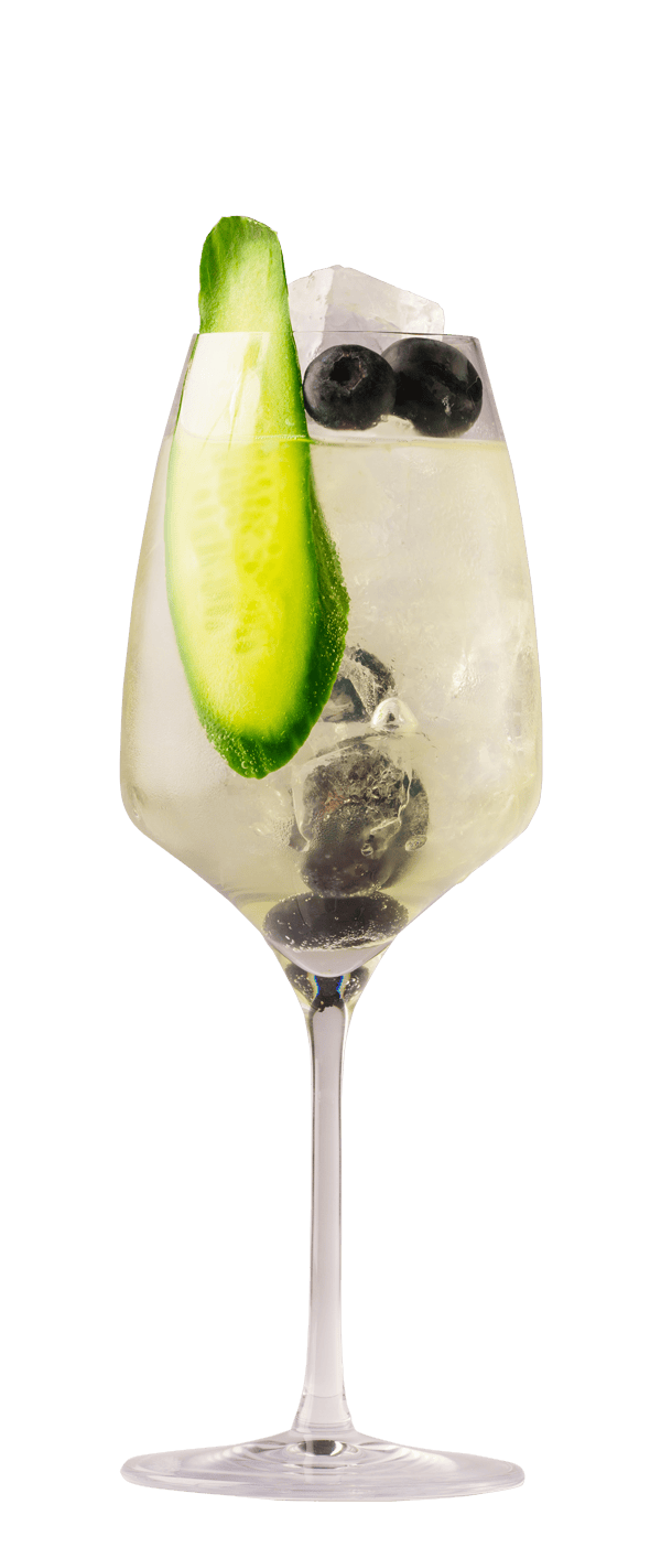 Garnished with cucumber & blueberries.