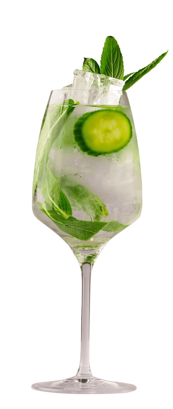 Garnished with mint & cucumber.